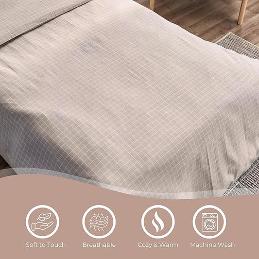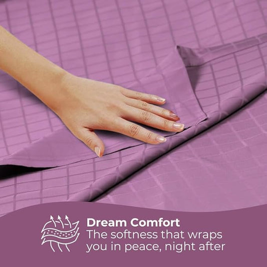 Experience cloud-like comfort with our premium dobby checked bedsheets, where intricate patterns meet sumptuous cotton in a harmonious blend of sophistication and style, transforming your bedroom into a sanctuary of luxury with a timeless checked design that elevates any décor while promising nights of unparalleled comfort and elegance.