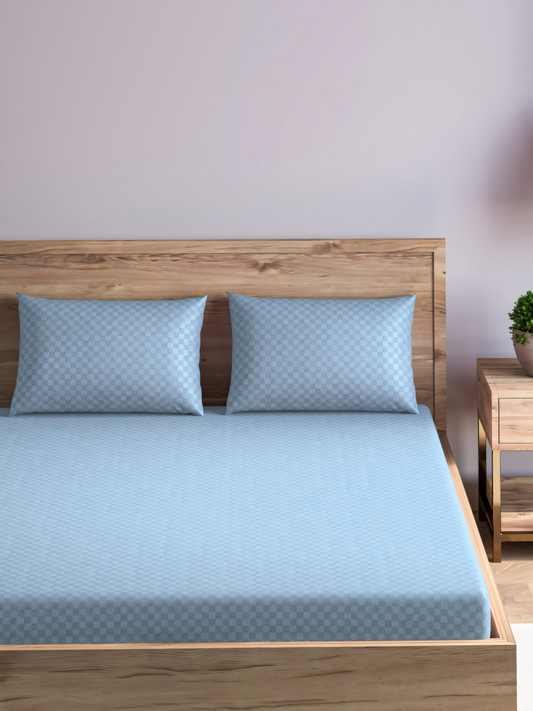 Slate Blue Dobby Checked Bedsheet with Pillow Cover