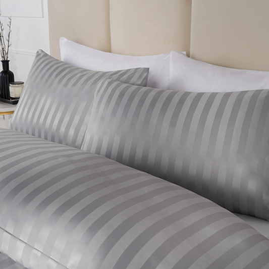Silver Grey Stripe Design Bedsheet with Pillow Cover