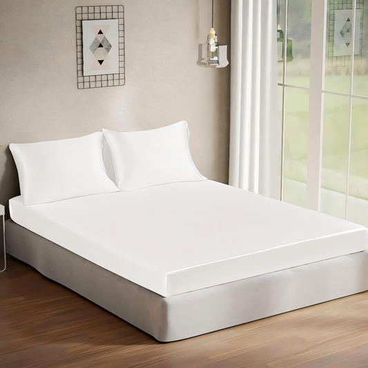Satin Plain 400 TC White Bedsheet with Pillow Cover