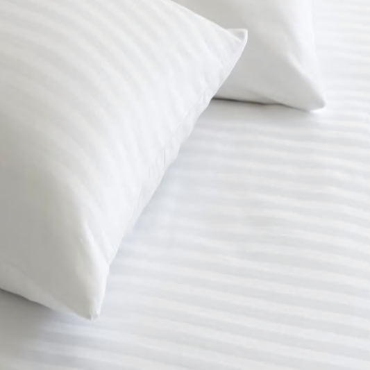 Satin Stripe 210TC White Bedsheet with Pillow Cover