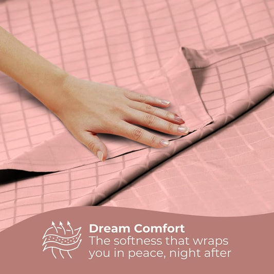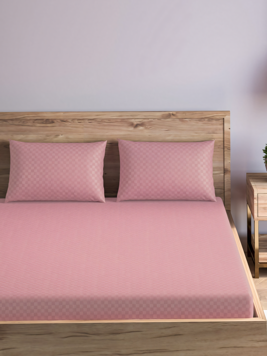 Dusty Rose Dobby Checked Bedsheet with Pillow Cover