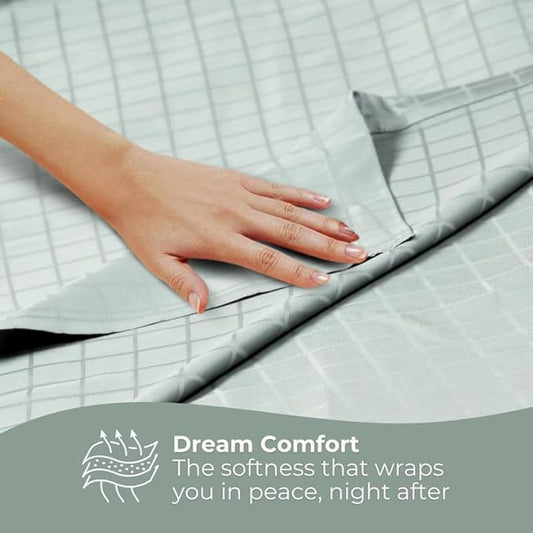 Tea Green Dobby Checked Bedsheet with Pillow Cover
