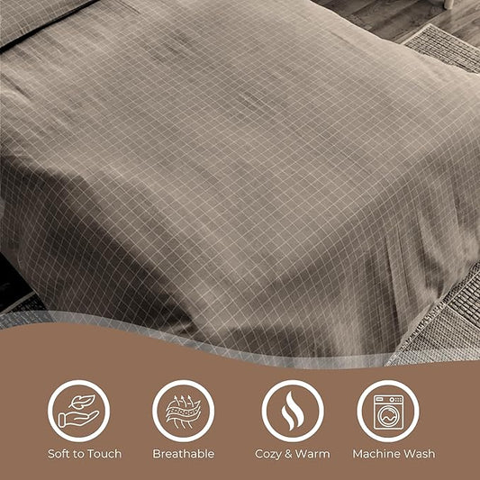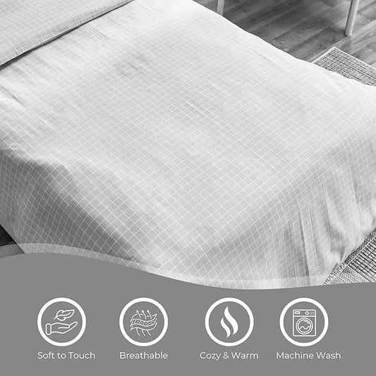 Smokey Dobby Checked Bedsheet with Pillow Cover