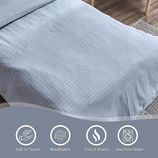 Slate Blue Window Checked Bedsheet with Pillow Cover