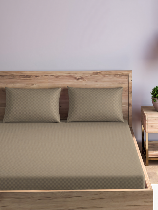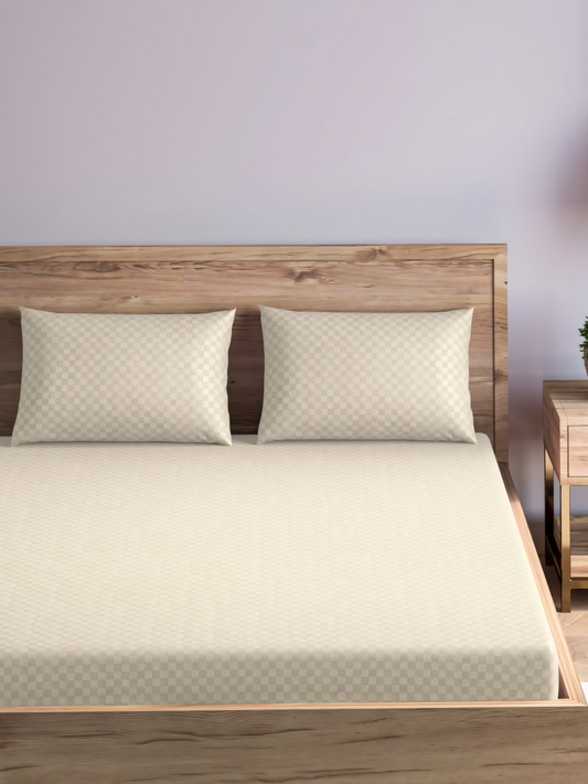 Pearl Dobby Checked Bedsheet with Pillow Cover