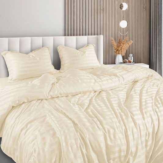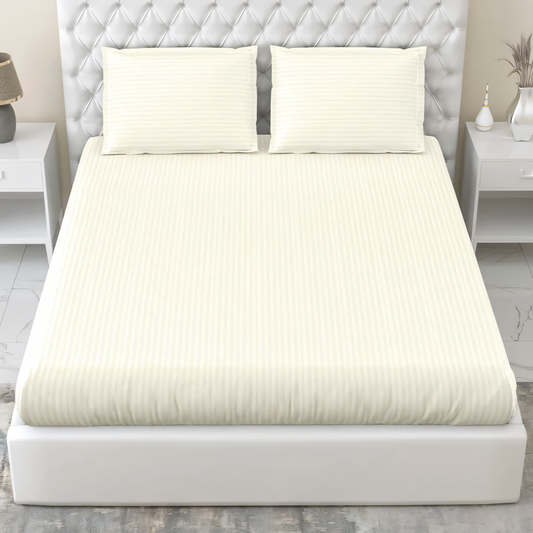 Ivory Stripe Design Bedsheet with Pillow Cover