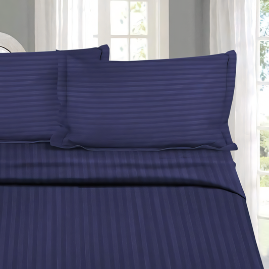 Navy Blue Stripe Design Bedsheet with Pillow Cover