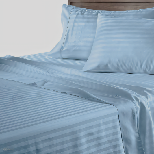 Slate Blue Stripe Design Bedsheet with Pillow Cover