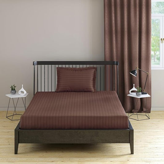 Mocha Stripe Design Bedsheet with Pillow Cover