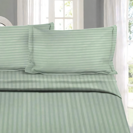 Tea Green Stripe Design Bedsheet with Pillow Cover